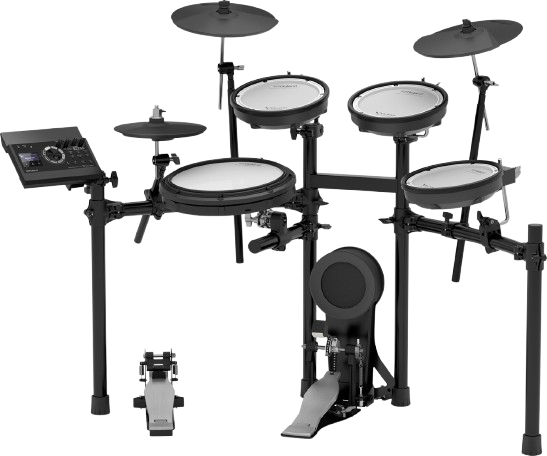 Roland TD-17KV Drum sound module: TD-17 KD-10 Bęben Basowy Tom-tom 1: PDX-8 Tom-tom 2: PDX-8 Floor tom: PDX-8 Werbel PDX-12 Talerz Ride CY-8 Talerz Crash CY-8 Hi-Hat: CY-5 Hi-Hat control pedal: FD-9 |